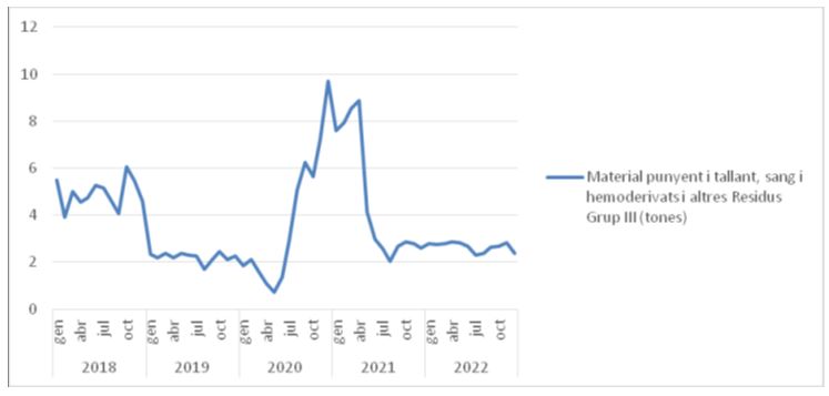 Els únics increments que s'han produït, han estat d'olis de cuina, residus químics no halogenats, i residus citotòxics. En el cas d'olis de cuina es deu probablement al fet que es cuina in-situ. En el cas dels residus citotòxics, i químics, es deu a l'increment de l'activitat d'Anatomia Patològica en el cas dels químics, i a la gestió dels medicaments perillosos, en el cas dels citotòxics. En canvi, el residu biològic ha continuat disminuint (-61,3%), arribant a nivells de 2019.